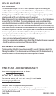 LEGAL NOTICES FCC information This device complies with part 15 of the FCC Rules. Operation is subject to the following two conditions: (1) This device may not cause harmful interference, and (2) this device must accept any interference received, including interference that may cause undesired operation. Warning : Changes or modifications to this unit not expressly approved by the party responsible for compliance could void the user’s authority to operate the equipment.
