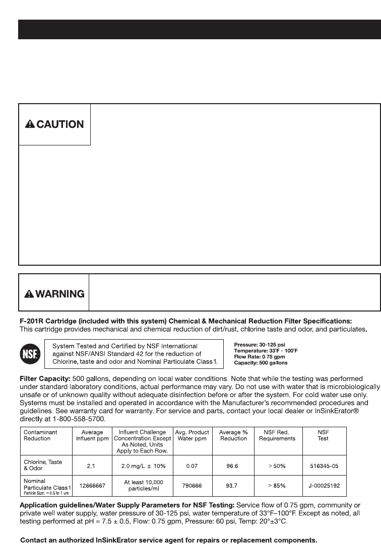 sediment, chlorine taste and odor from drinking water, and has not been evaluated for other