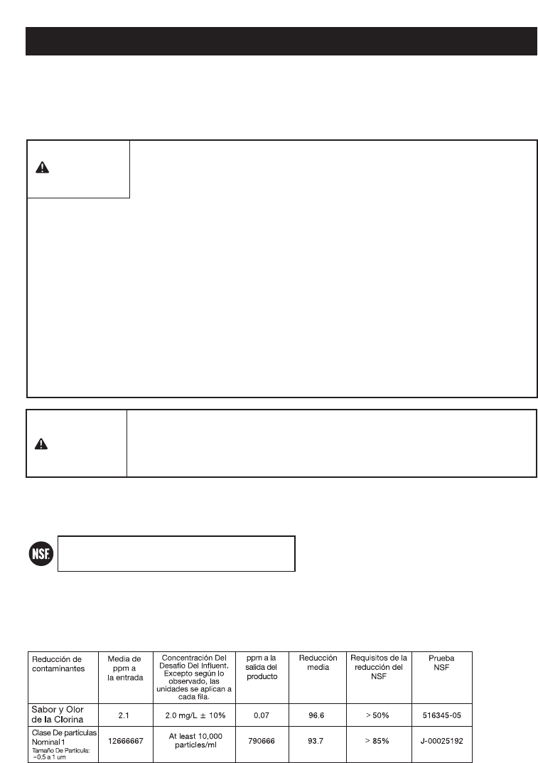respecto a la norma 42 de la NSF/ANSI para la reducción de la