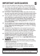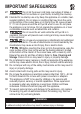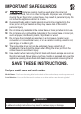 IMPORTANT SAFEGUARDS WARNING To avoid injury, read and understand the instructions in this user manual before attempting to use this appliance. WARNING Electrical shock hazard. Use grounded outlet only. • DO NOT remove ground. • DO NOT use an adapter. • DO NOT use an extension cord. Failure to follow these instructions may result in electric shock and/or serious injury.
