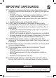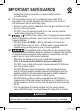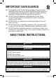 IMPORTANT SAFEGUARDS 17 Spilled food can cause serious burns. A short power-supply cord is provided to reduce the hazards resulting from grabbing, entanglement and tripping. • DO NOT let the power cord hang over edges of tables or counters, or touch hot surfaces or open flame, including the stovetop. • DO NOT use below-counter power outlets, and never use with an extension cord. • Keep the appliance and cord away from children.