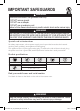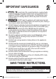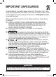 IMPORTANT SAFEGUARDS WARNING Electrical shock hazard. Use grounded outlet only. • DO NOT remove ground. • DO NOT use an adapter. • DO NOT use an extension cord. Failure to follow these instructions may result in electric shock and/or serious injury. WARNING THE FAILURE TO FOLLOW ANY OF THE IMPORTANT SAFEGUARDS AND/OR THE INSTRUCTIONS FOR SAFE USE IS A MISUSE OF YOUR APPLIANCE THAT CAN VOID YOUR WARRANTY AND CREATE THE RISK OF SERIOUS INJURY.