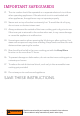IMPORTANT SAFEGUARDS When using your appliance, basic safety precautions should be followed, including the following: 1 1. EAD ALL INSTRUCTIONS, SAFEGUARDS, AND WARNINGS BEFORE R OPERATING APPLIANCE. 2. lways operate the appliance on a horizontal surface that is level, stable, A and non-combustible. 3. o not touch hot surfaces. To avoid spills and burns, do not carry cooker D by the lid handle. To carry, wait until the cooker has cooled to room temperature, then lift the cooker from the bottom.