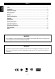 Index English Index........................................................................................................................................................... 1 Introduction ........................................................................................................................................... 2-3 Contents of Package ............................................................................................................................... 3 Battery Operation .........