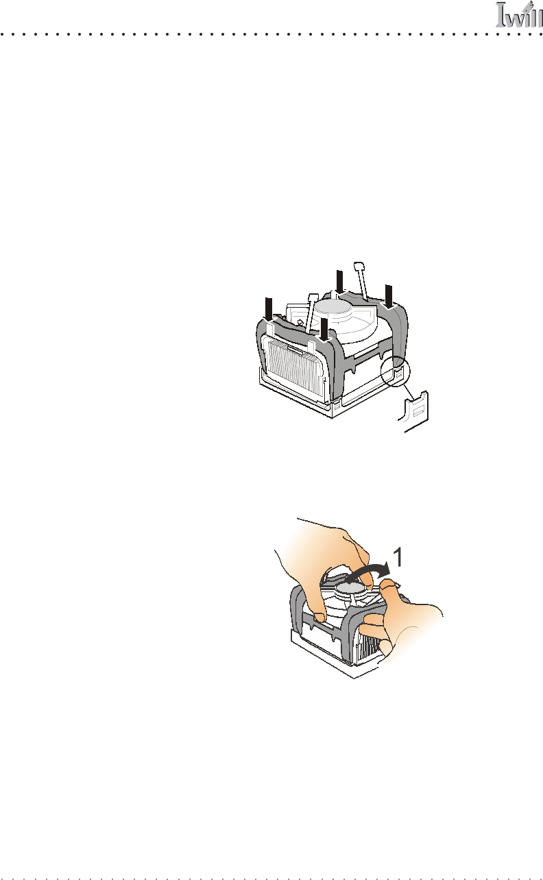 1. Place the Fan/Heatsink on top of the Pentium 4 CPU