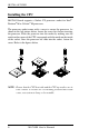 INSTALLATIONS Installing the CPU MAT-880 board supports a Socket 479 processor socket for Intel® Pentium® M or Celeron ® M processors. The processor socket comes with a screw to secure the processor. As shown in the left picture below, loosen the screw first before inserting the processor. Place the processor into the socket by making sure the notch on the corner of the CPU corresponds with the notch on the inside of the socket. Once the processor has slide into the socket, fasten the screw.