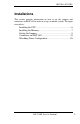 INSTALLATIONS J2: External Audio Connector Signal Name LINEOUT_R Ground LINEIN_R Ground Mic-In Ground Pin # 1 3 5 7 9 11 Pin # 2 4 6 8 10 12 Signal Name LINEOUT_L Ground LINEIN L Ground VREFOUT Protect pin CN3: Digital 4-in 4-out I/O Connector Signal Name Ground Out3 Out2 Int3 Int2 Pin 1 3 5 7 9 Pin 2 4 6 8 10 Signal Name Vcc Out1 Out0 Int1 Int0 J3: Wake On LAN Connector J3 is a 3-pin header for the Wake On LAN function on the board.