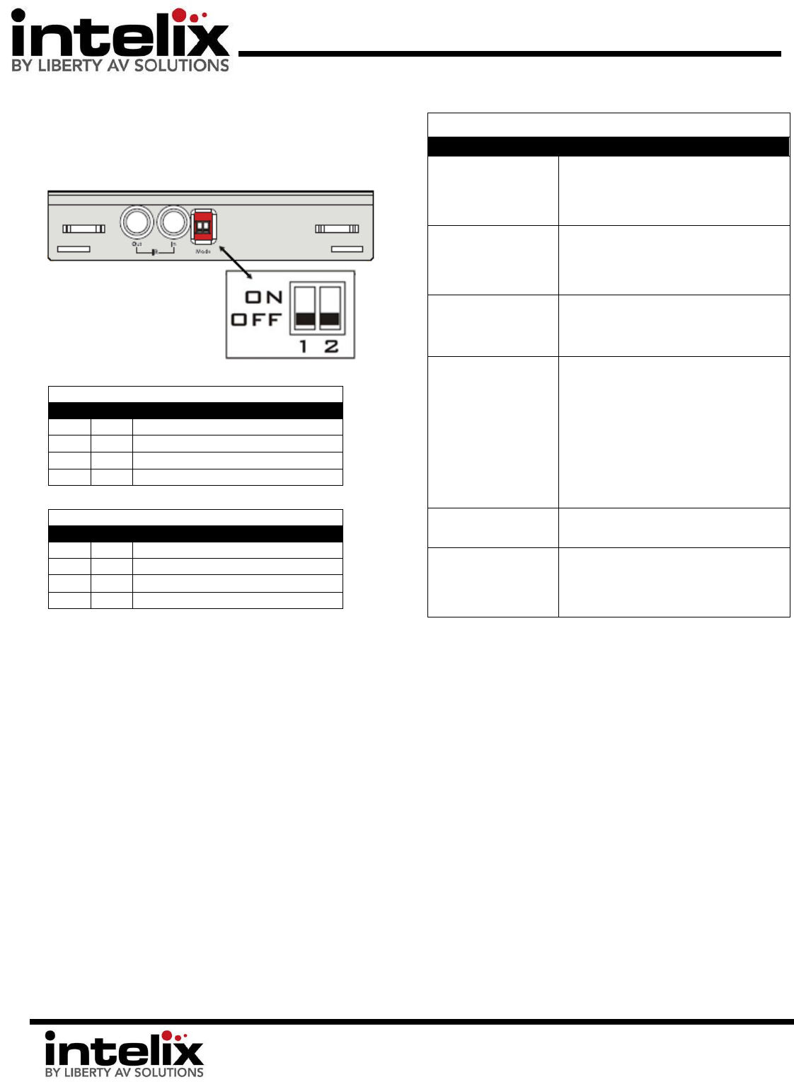DIGI-HD-IR3 Receiver Dip Switch Positions