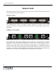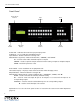 FLX-1616 Installation Guide Front Panel Power LED/ IR Receiver Rack Handle LCD Status Display Input Buttons Menu (Top) Output Buttons Menu (Bottom) Power LED – Indicates the matrix has proper input power. IR Receiver – For use with the included IR remote. Input Buttons –Buttons labeled “1” through “10”. Menu Buttons (Top Row) –Buttons labeled “AV”, “COMMA”, and “UNDO”.
