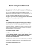 R&TTE Compliance Statement This equipment complies with all the requirements of Directive 1999/5/EC of the European Parliament and the Council of March 9, 1999, on radio equipment and telecommunication terminal equipment and the mutual recognition of their conformity (R&TTE). The R&TTE Directive repeals and replaces in the directive 98/13/EEC (Telecommunications Terminal Equipment and Satellite Earth Station Equipment) as of April 8, 2000.