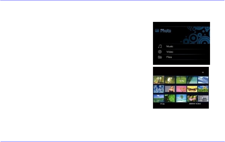 Die Bilder auf dem ausgewählten Speichermedium werden als Miniaturbilder dargestellt. Es