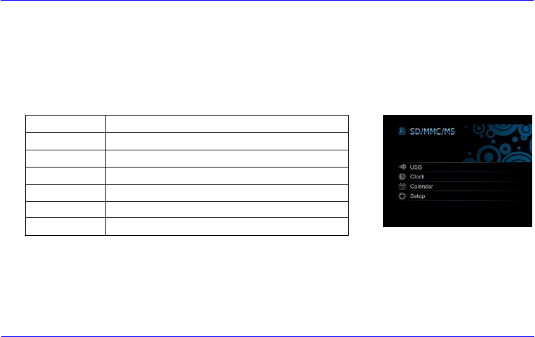 En el menú principal es posible seleccionar entre los soportes de memoria conectados, el reloj, el calendario y la configuración.