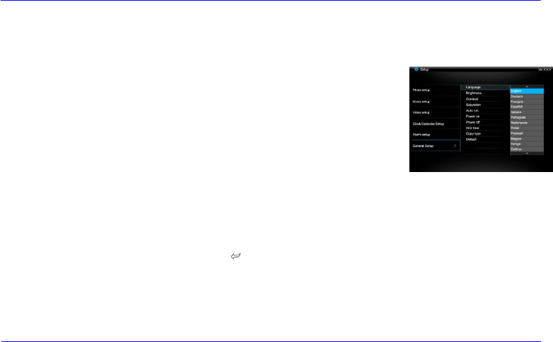 Usted puede ajustar la configuración del sistema del MARCO DE FOTOS DIGITAL (MD) de modo individual.