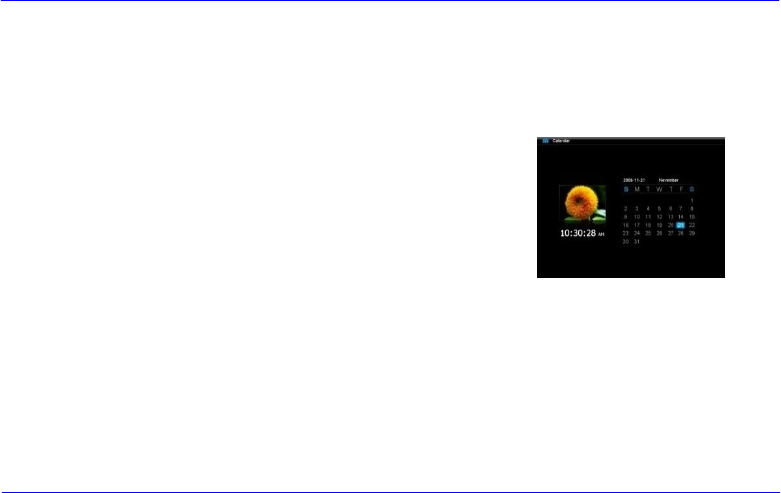 En el modo calendario se muestra la fecha actual, la hora actual y al fondo una presentación con las imágenes disponibles