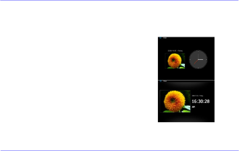 W trybie kalendarza wyświetlana jest aktualna data, czas, zaś w tle pokaz slajdów, korzystający z dostępnych zdjęć.