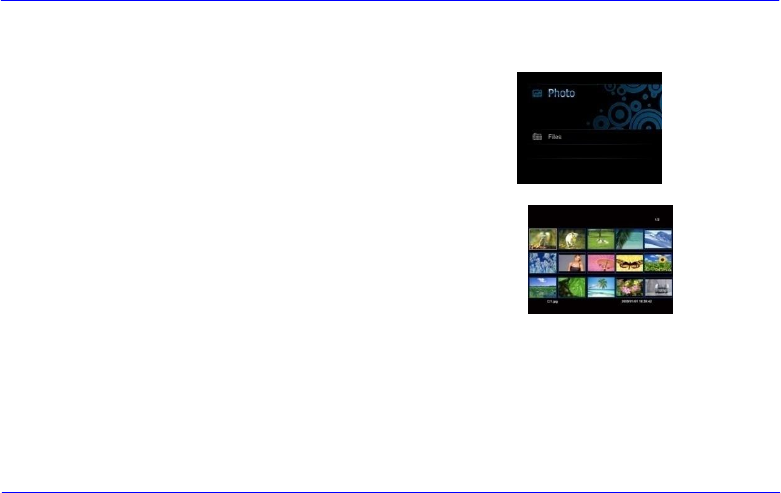 I file e le foto presenti nel supporto di memorizzazione selezionato vengono visualizzati con