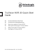 TruVision NVR 20 Quick Start Guide EN TruVision NVR 20 Quick Start Guide DE TruVision NVR 20 Schnellstartanleitung ES Guía de inicio rápido de TruVision NVR 20 FR Guide rapide de démarrage du TruVision NVR 20 IT Guida di avvio rapido di TruVision NVR 20 PT Guia Rápido do TruVision NVR 20 P/N 1070713B-multilingual• REV 1.