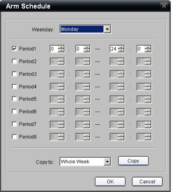 6. Similar to setting recording schedules, the Arm Schedule page allows you to