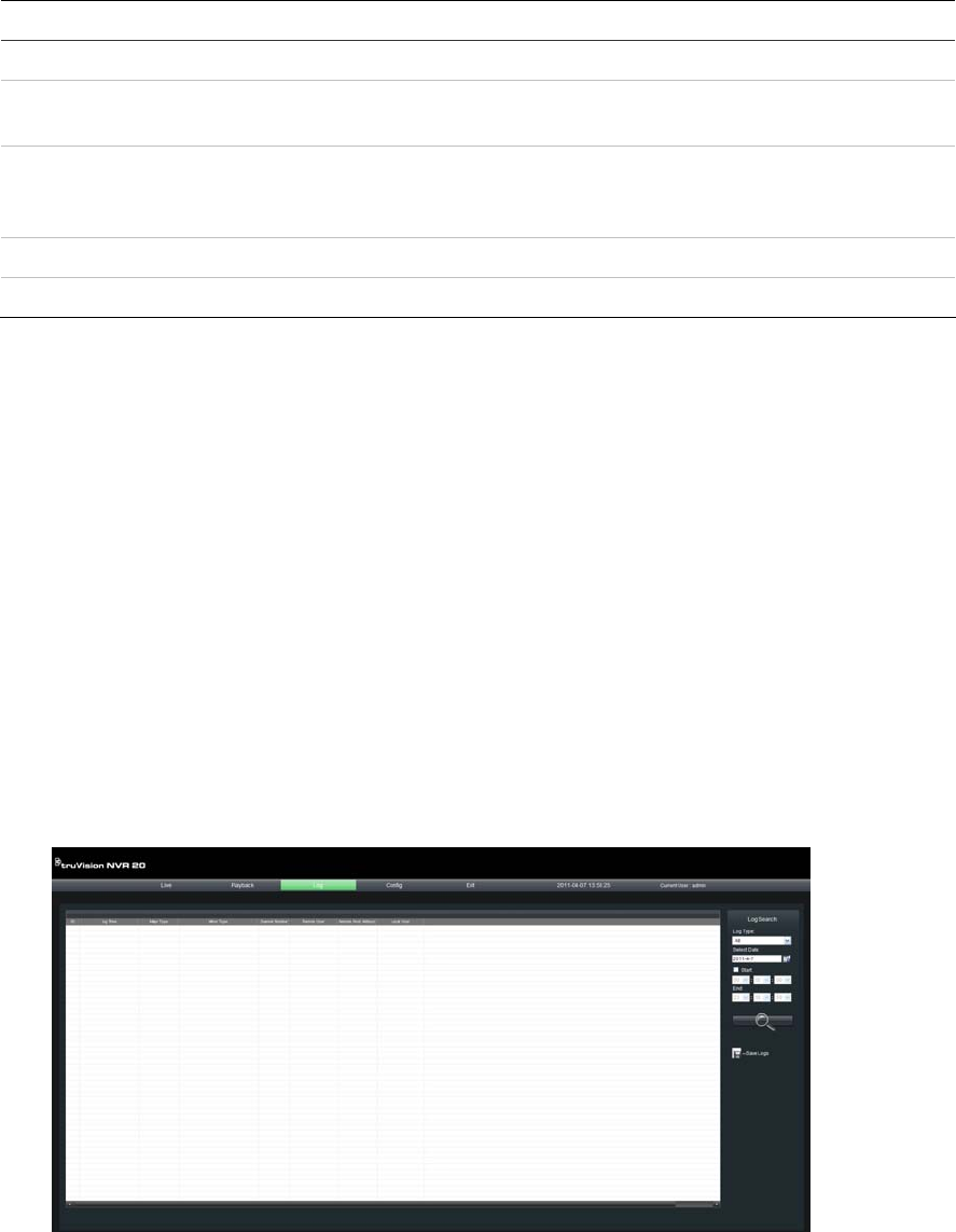 Exception All events associated with Exception Parameters (HDD Full, HDD Fault, Network