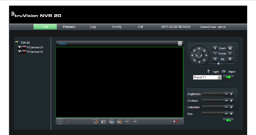 Note: PTZ and Brightness/Contrast controls are only available on specific