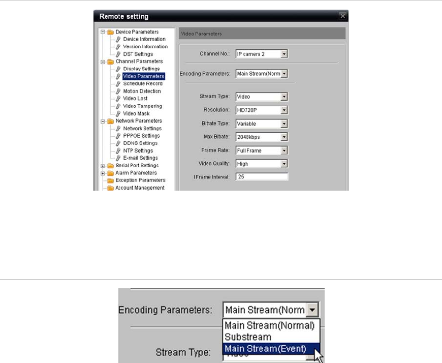 2. Under Encoding Parameters Select the stream you wish to configure.