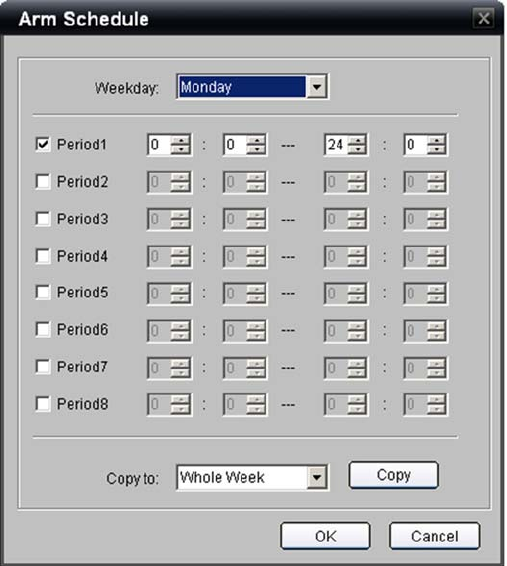 10. Select Settings from the Arm Schedule to define a schedule for motion