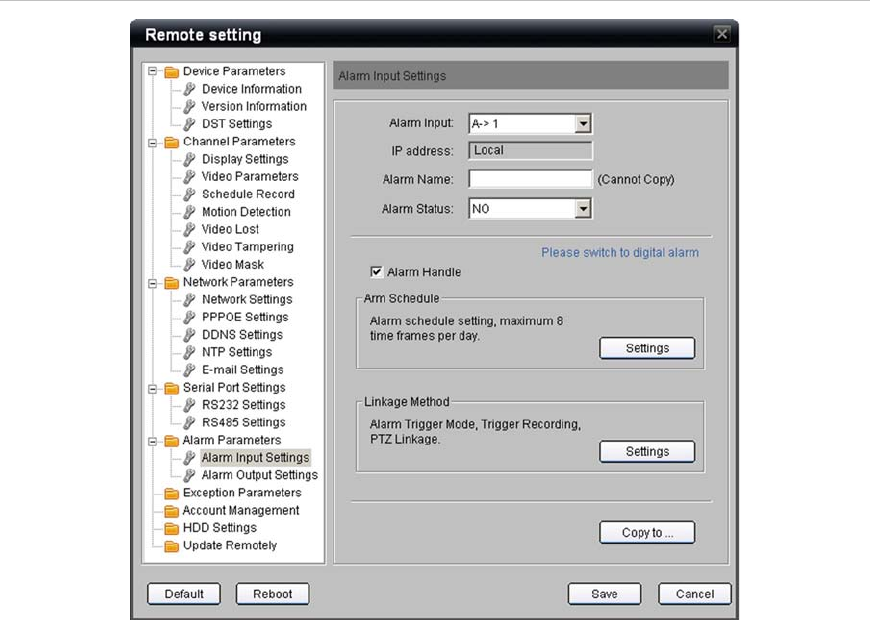 The default enabled (Arm) schedule is 7x24 for every day of the week.
