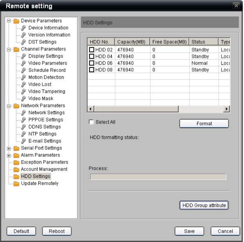 1. Navigate to the HDD Settings page from Main Browser Page: Click Config >