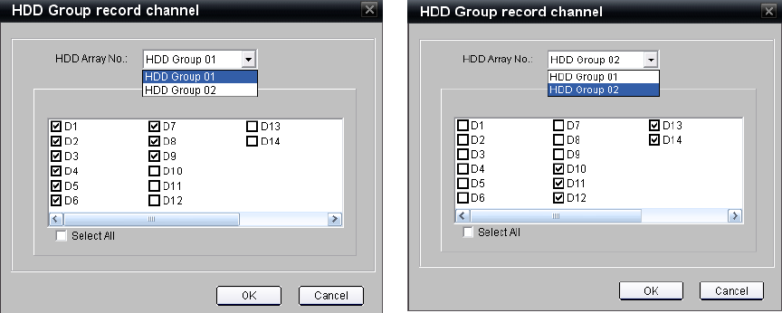 Select HDD Group 02 from the drop-down and check the cameras to be