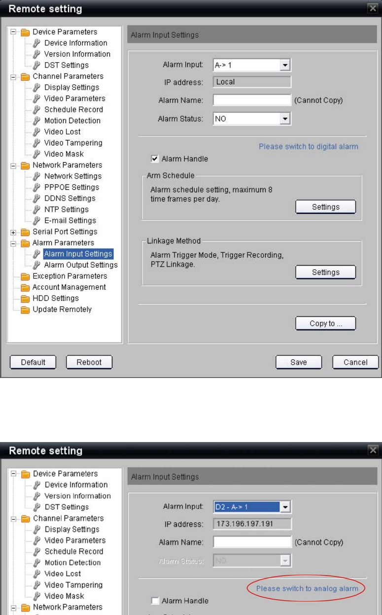 1. Click on the text “Please switch to digital alarm” to change the view to IP
