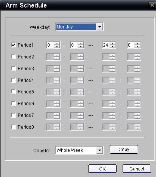 6. Similar to setting recording schedules, the Arm Schedule page allows you to