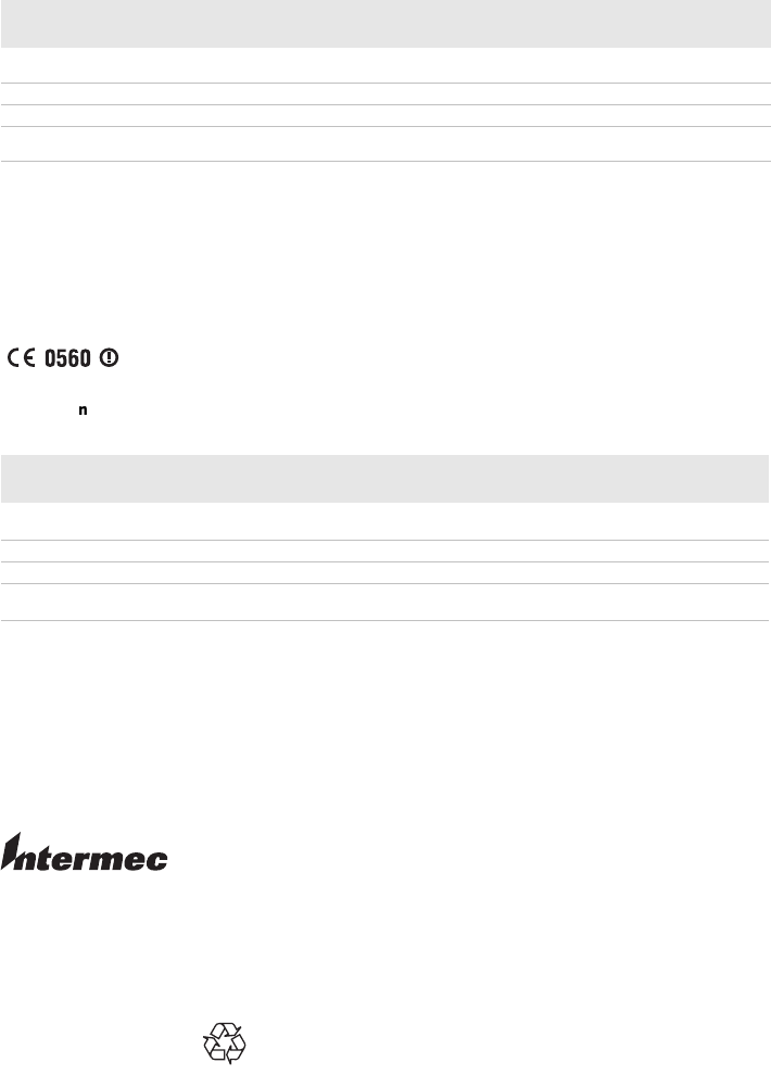 Intermec Technologies Corporation, bu cihazın R&TTE Direktifi'nin (1999/5/EC) temel gereklilikleri ve diğer ilgili hükümlerine uygun