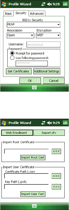 4 For 8021x Security, select PEAP, TLS, or TTLS.