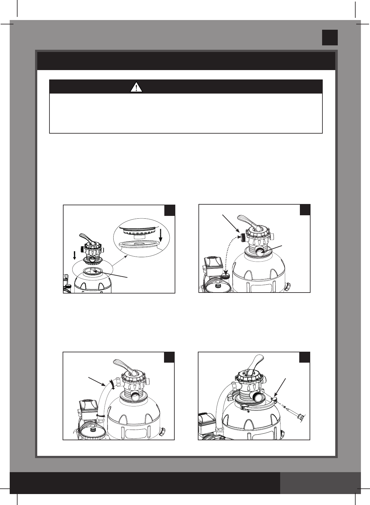 Abfluss des Pumpenmotors. Befestigen Sie im Uhrzeigersinn den Sandfilter-Verbindungsschlauch