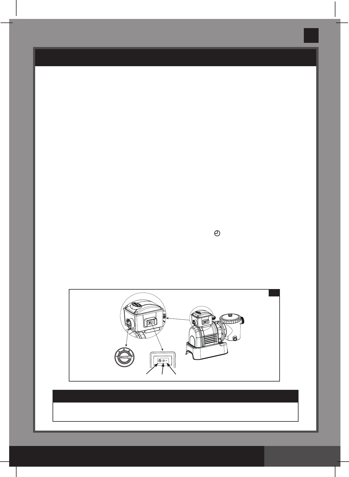 B. Schalten Sie die Pumpe ein, indem Sie den Schalter auf die “ “ Position stellen. Die Filterpumpe