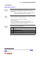1. Introduction About this Document, Continued Conventions This document applies to the following conventions: • Arial Bold blue fonts are used for order codes. • Arial Blue underline fonts are used for document references. • Arial Bold black fonts are used for indicating important information or paragraph header. This symbol means DANGER. The purpose of this symbol is to warn you that any wrong action can cause bodily injury or even death. This symbol means CAUTION.