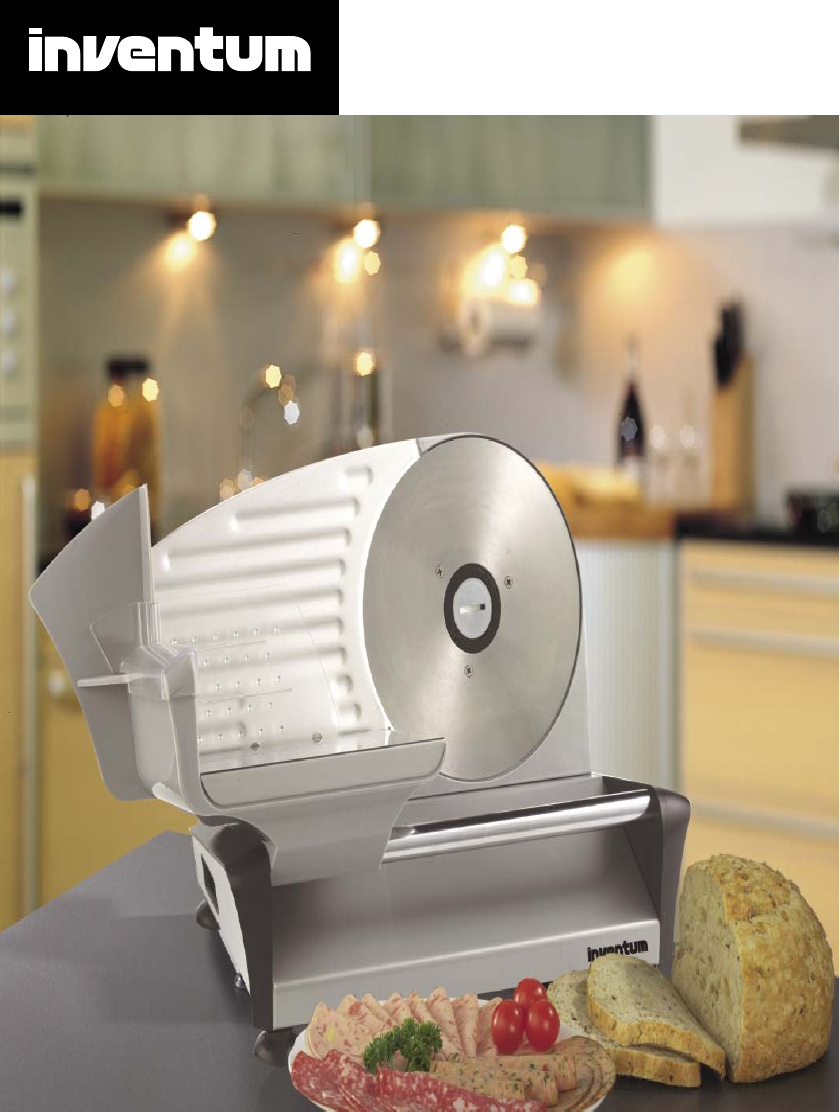 N E D E R Gebruiksaanwijzing Inventum snijmachine Model AS15 Technische gegevens: 230V ~ 50Hz 100 Watt Inhoudsopgave 1.Beschrijving van de snijmachine 2.Veiligheidsvoorschriften 3.Voor het eerste gebruik 4.Het gebruik van de snijmachine 5.Reiniging en onderhoud 6.Garantiebepalingen en service 1. Beschrijving van de snijmachine 1.Aan/ uit schakelaar 5. Snijplank 2.Basis 6. Glijdend voedselplateau 3.Draaiknop voor snijdikte 7. Drukplaat 4.Aandrukplaat met 8. Motorhuis vingerberschermer 9. Mes 10. Basis 2.