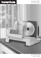 F R A N Ç AIS Mode d’emploi Inventum trancheuse Model AS20 Information technique 230V ~ 50Hz - 100 Watt Tables des matières 1. Définition de illustration 2. Précautions d’usage 3. Pour une première utilisation 4. Utilisation la trancheuse 5. Nettoyage en entretien 6. Conditions de garantie et service après vente 1. Définition de illustration 1. Bouton de marche 2. Bouton de sécurité 3. Bouton régulateur 4. Plaque glissière tranches 5. Plaque glissière (2) 6. Plaque glissière 7. Boiter du moteur 8. Lame 9.