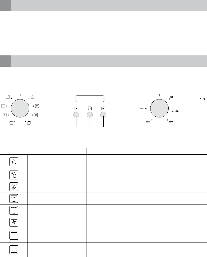 To set the oven, use the two knobs. One knob is for setting the temperature and one knob for switching the oven on and off and for