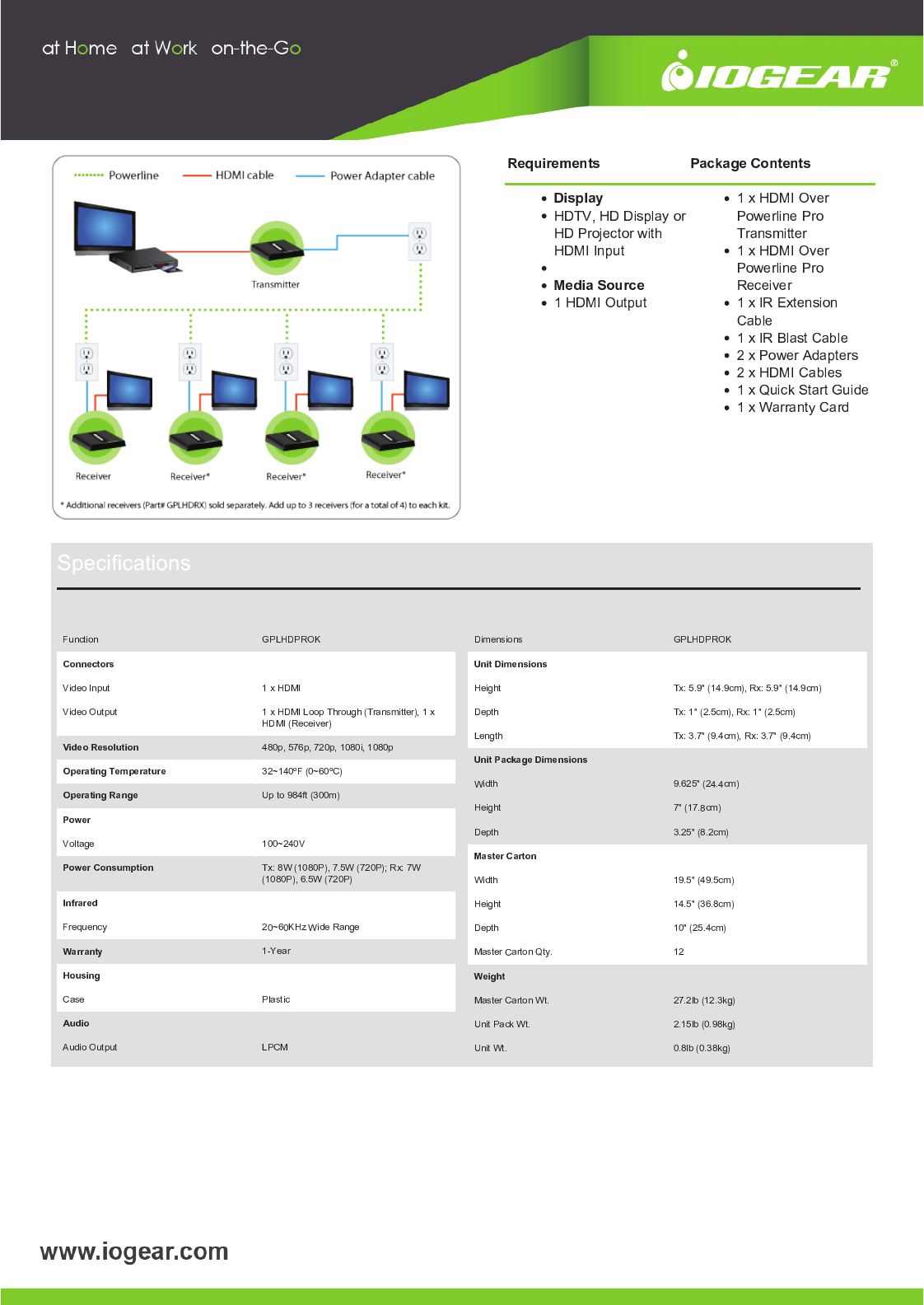 IOGEAR Accessory GPLHDPROK HDMI Over Powerline PRO Kit