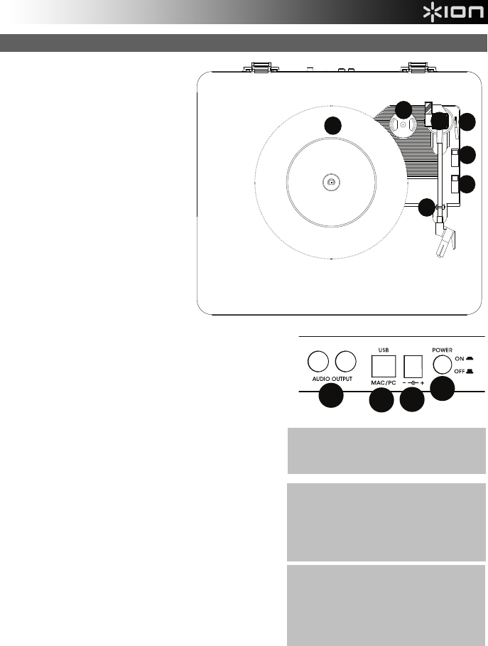 8. Uscita RCA** – L'audio di un vinile riprodotto è inviato