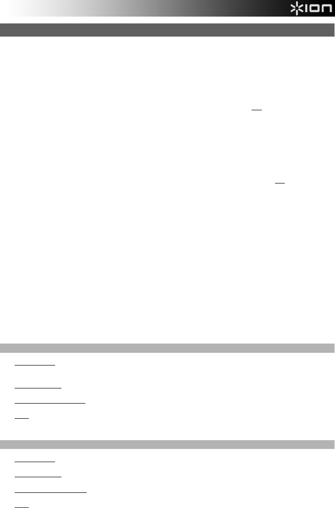 BEFORE RETURNING THE PRODUCT, please contact ION Audio or your retailer for technical support.