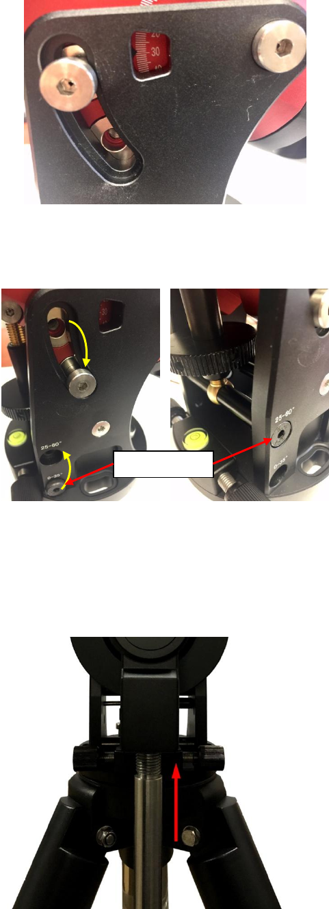 Unthread and remove the Position Bolt to its new location. Adjust the Latitude Adjustment Knob while