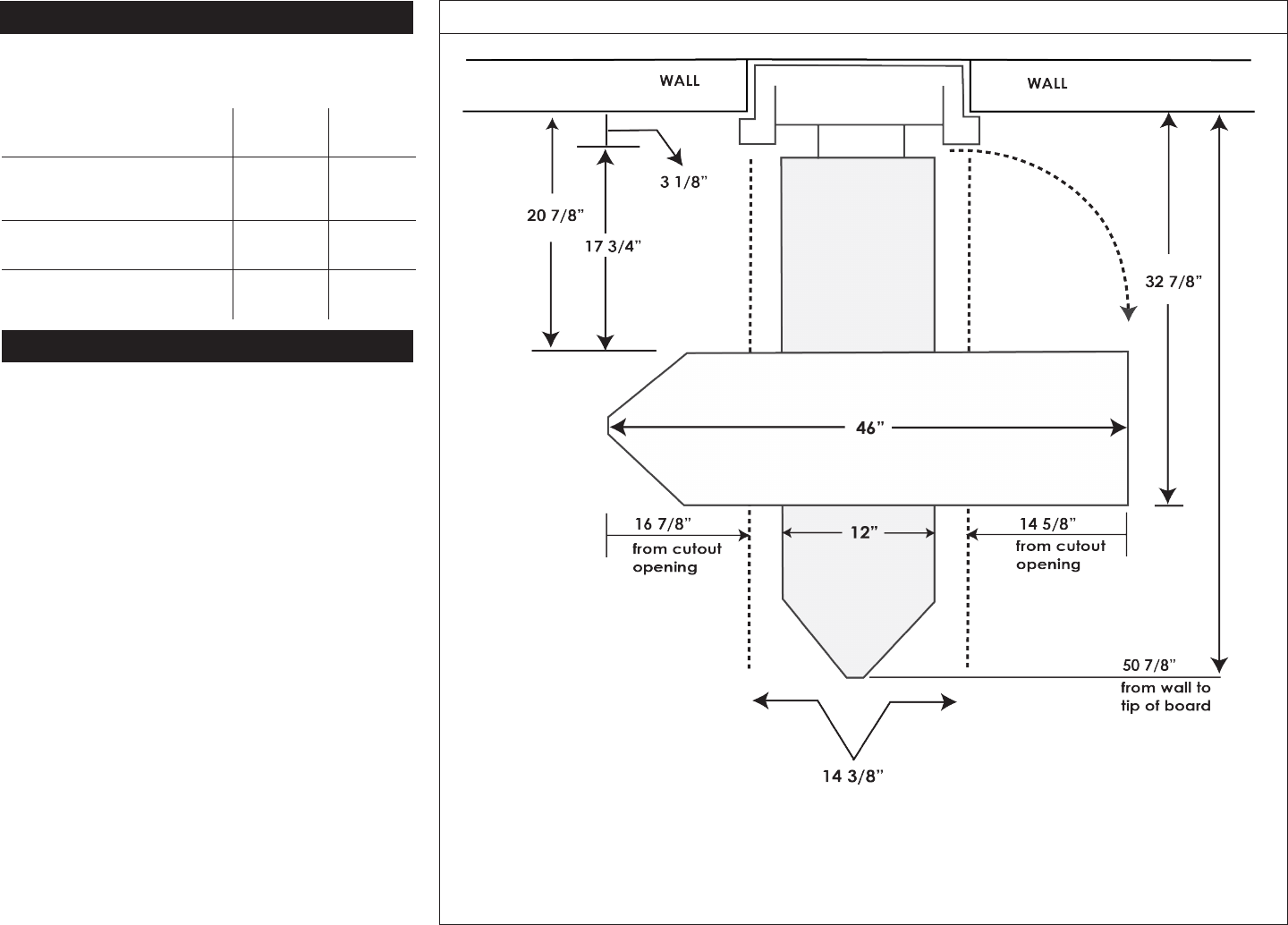 board 90º to the le is 16 7/8” to the right of the cabinet