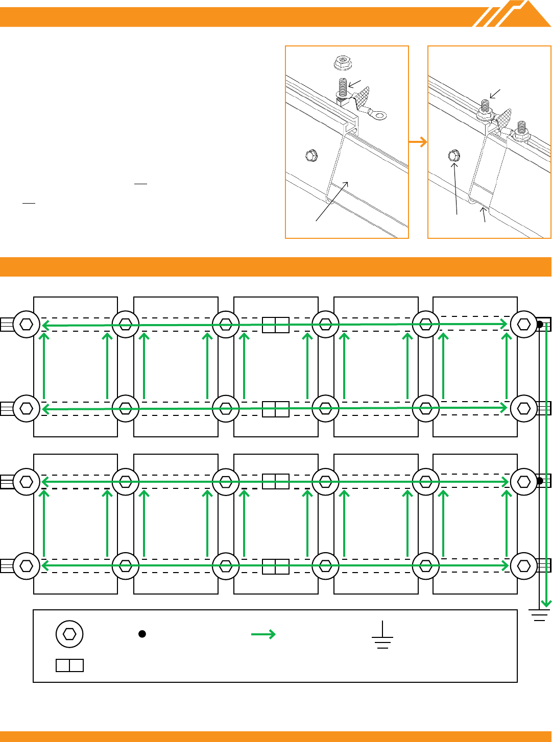 between rails. Attach other end of Grounding Strap with