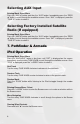 Selecting AUX Input Entering Mode Select Menu Press the “AM/FM” button and then the “AUX” button. Immediately press the “SEEK ▲” button to scroll through the available sources. Once “AUX” is displayed, press the “TUNE ▼” button to select it. Selecting Factory Installed Satellite Radio (If equipped) Entering Mode Select Menu Press the “AM/FM” button and then the “AUX” button. Immediately press the “SEEK ▲” button to scroll through the available sources.