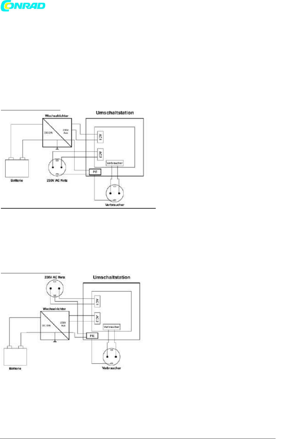 - Dopiero, jeśli na AC2 nie ma prądu, wejście AC1 przełącza się na zasilanie z akumulatora i