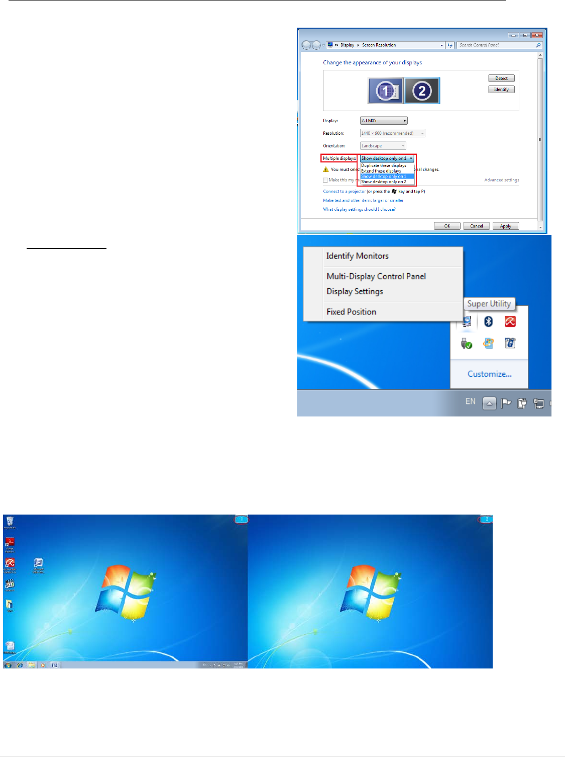 Seleccione “Mostrar escritorio sólo en 2” y la