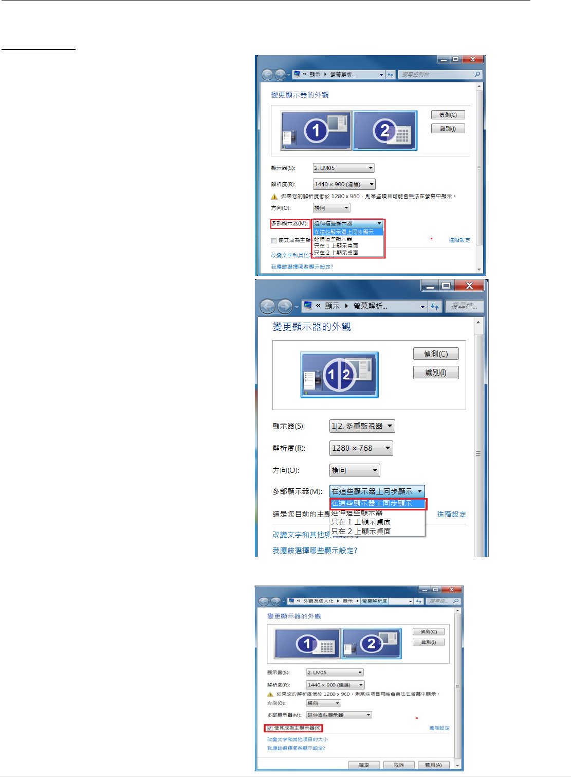 (M):”下拉選單選擇 “延伸這些顯示器” ,
