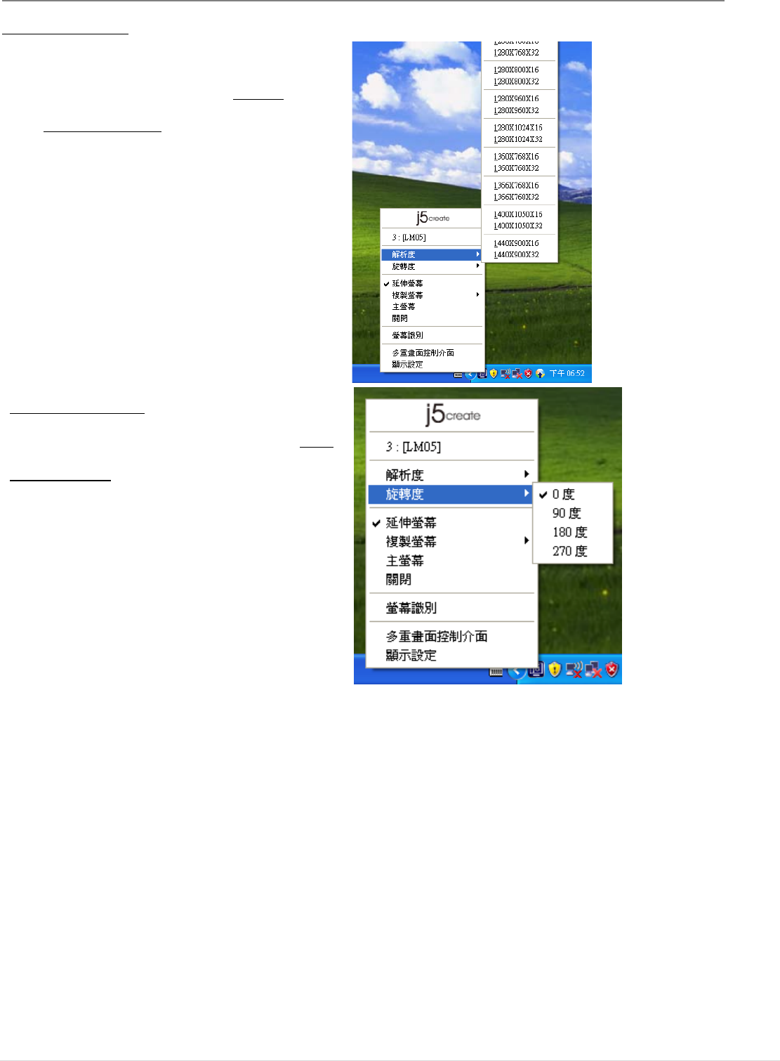 螢幕解析度設定: